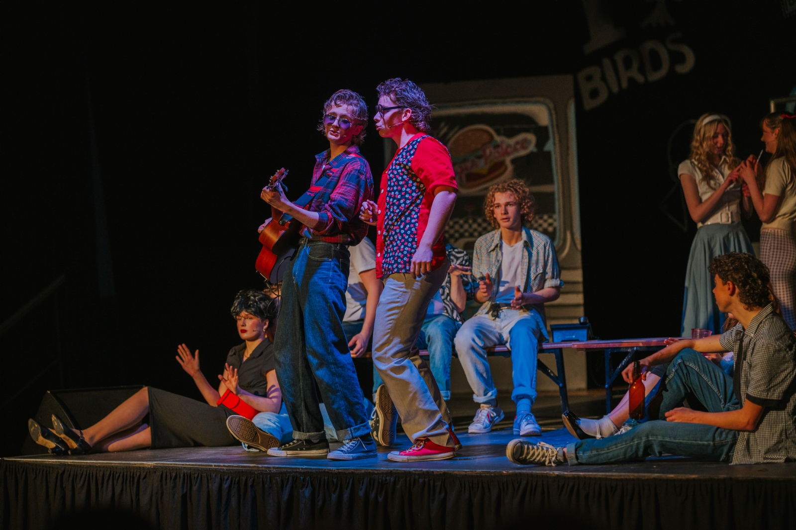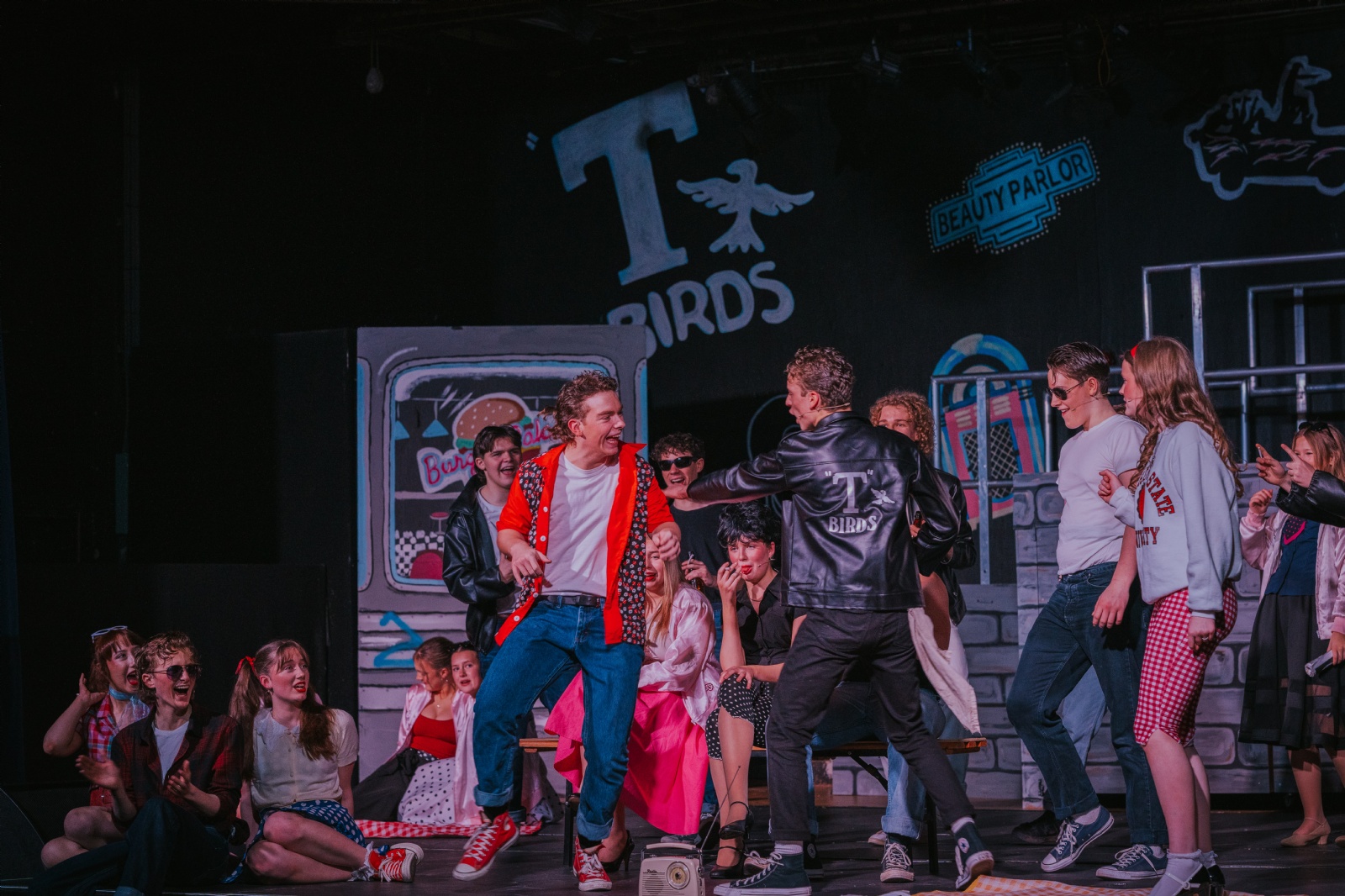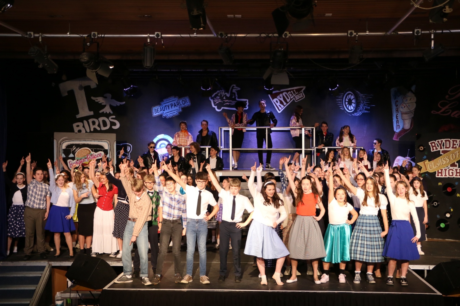 This year’s school production Grease, played to more than 1200 people, with 4 evening shows and the Year 6 primary school transition matinee. Every aspect of the production had students involved – from the talented cast and show band, to those working backstage, designing and operating the lighting and helping with sound, make up and costumes.